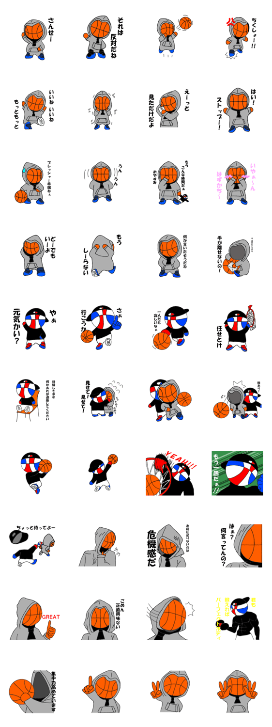 顔はボール。中身は熱いバスケット魂でできているバスケットボールマンのスタンプ第1弾です。
