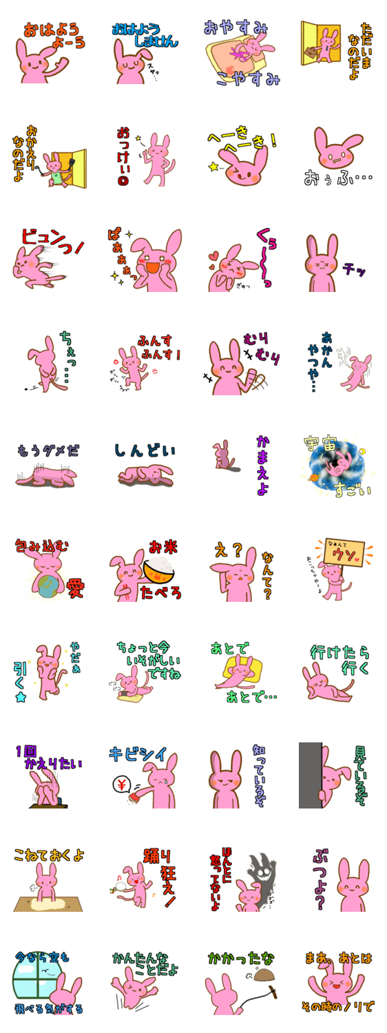 うさぎのようでうさぎじゃない。ちょっと不思議な生命体、坂本さんのちょっとゆるくてちょっとクセになるスタンプです。