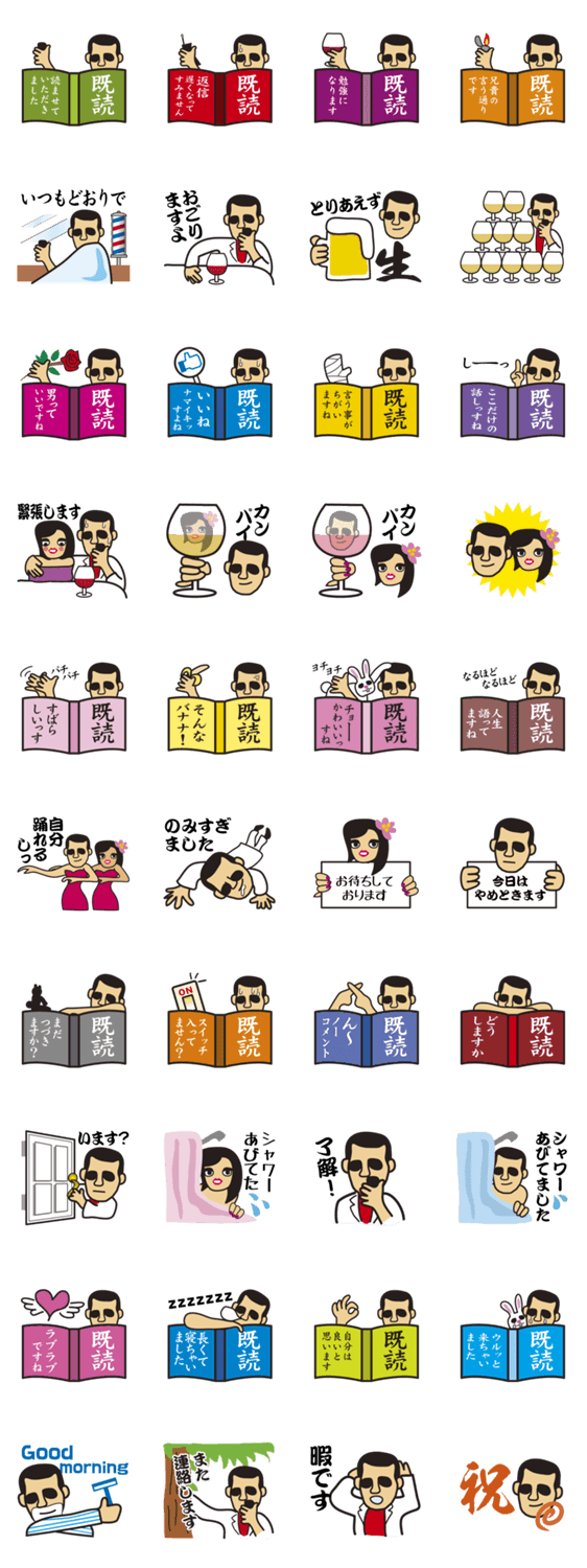 | スタンプ説明 | 見た目は恐そうだけど、とってもいい人。いい人のファンになってください。ぜひ、今夜もこのスタンプを! |