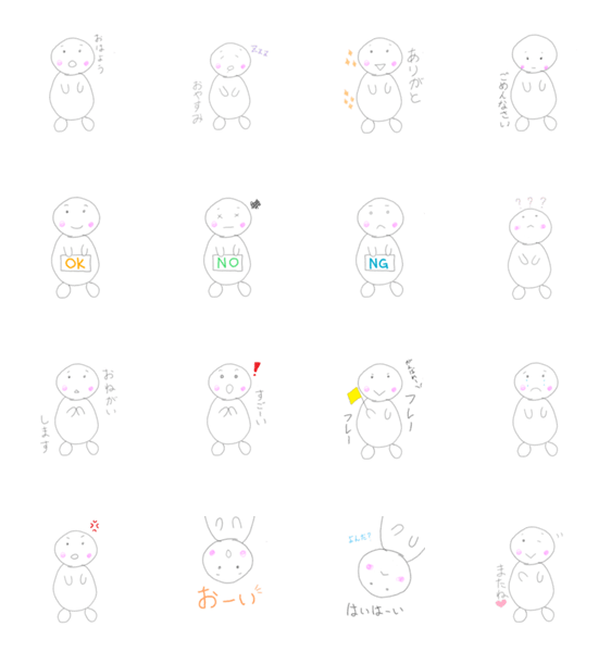 白くてまるい子、名前はまだない。日常で使えるスタンプです。