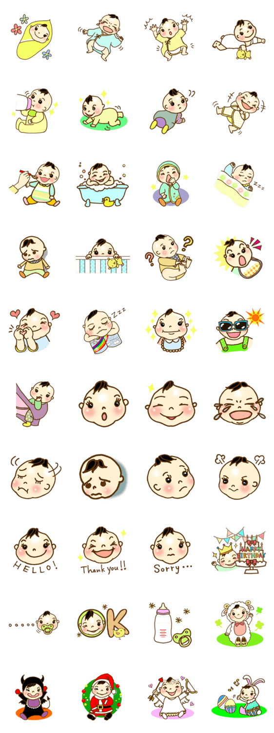 出産お祝いのプチギフトにも使える、かわいい仕草や表情の赤ちゃんスタンプです♪