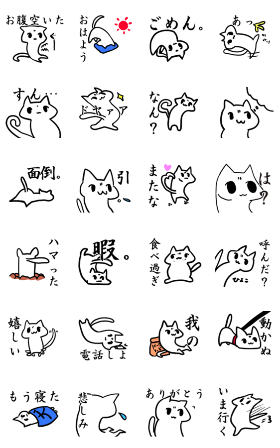 白ネコのあいうえお・・・ってるスタンプ