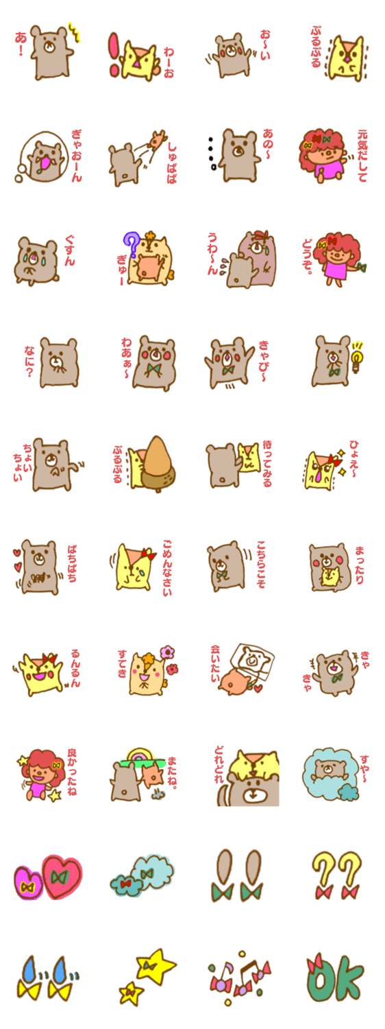 友達が欲しいクマと、くまさんが怖いハムスターのはむさん。時々、女の子。くまさんとはむさんは、友達になれたのか?可愛くて癒される、物語風の文字有・スタンプver.