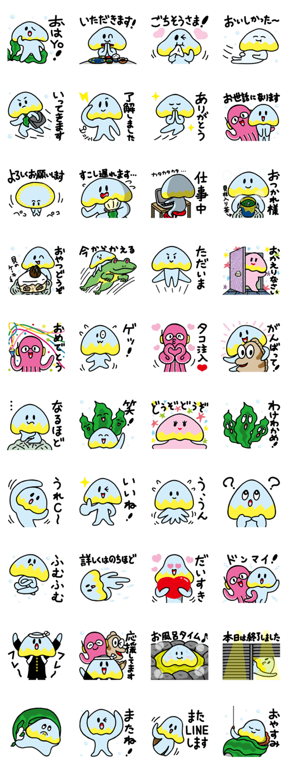 | スタンプ説明 | クラゲのゲッチャンと仲間たちのスタンプがついに登場!毎日使ってネ! |