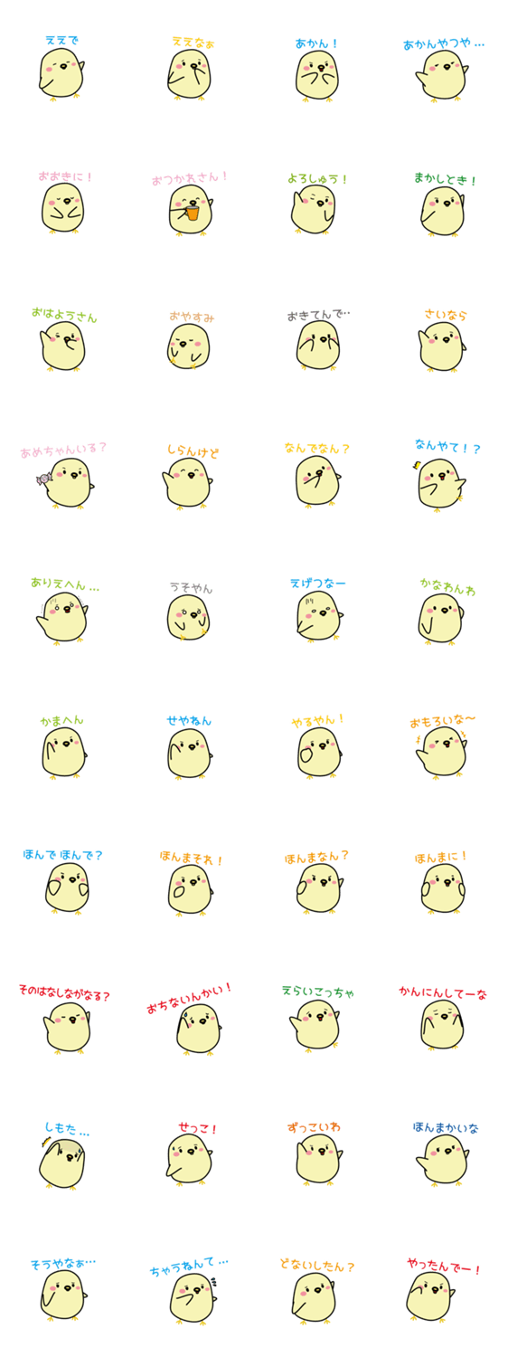 かわいいひよこ“ぴよよ”のスタンプ第6弾です!今回は大阪弁の日常的に使えるスタンプです。このスタンプで仲の良い友達との会話を盛り上げよう!