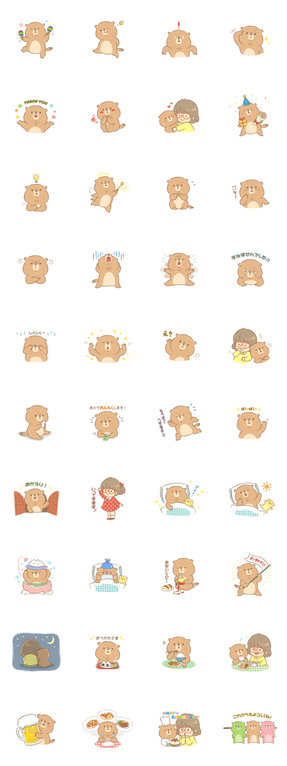 プレーリードッグのだんごと、一緒にくらしている赤眼鏡のはっち。なかよし2人のスタンプです。