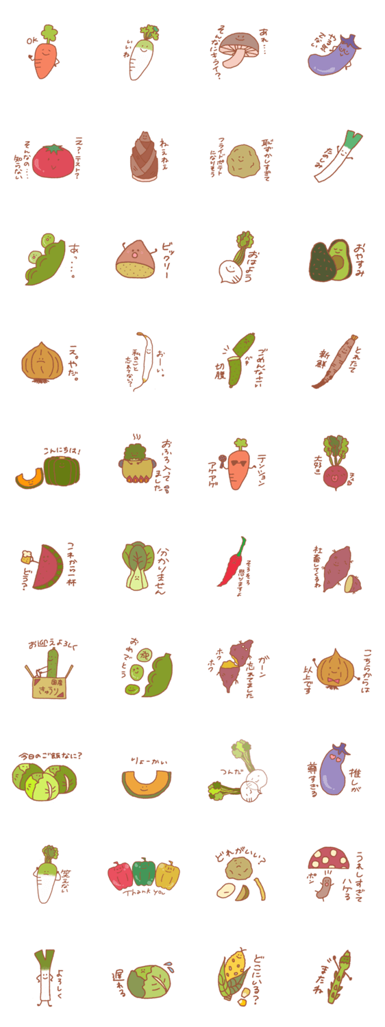 愉快なやさいたち登場!!いろんな場面で使いやすいスタンプ!