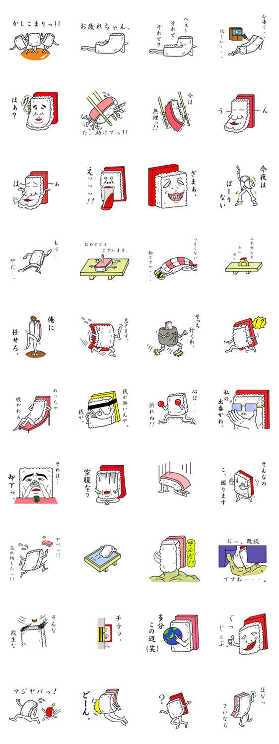 お寿司の妖精のスタンプです。彼らは感情的になると、自由自在に表情が変えれます。少しイラっとするようなスタンプを基本としています。可愛がって頂ければ光栄です。