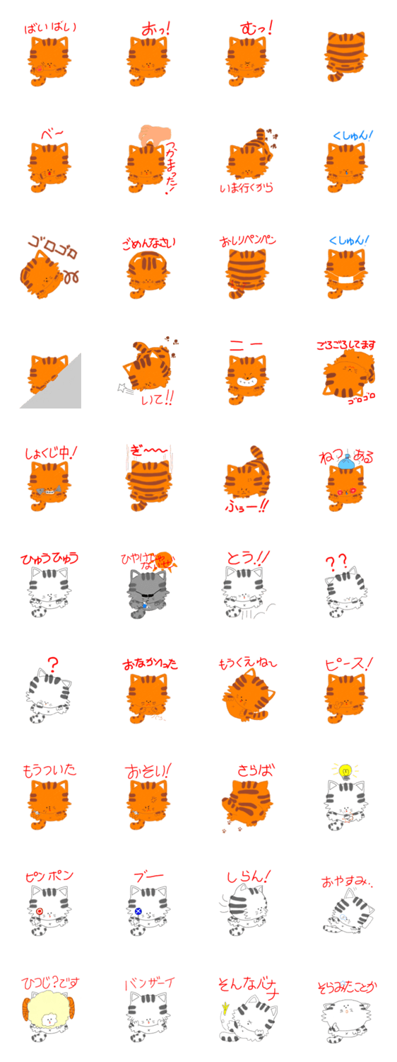 スタンプにちょうどいい丸い猫とその仲間たち第一弾。仲間は丸い犬、丸いライオン、ねんしょうさん?・・・第二弾があるのか!?