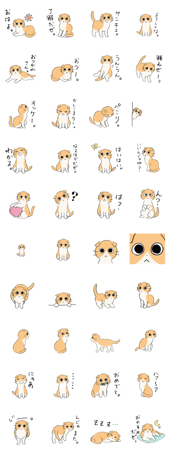 『しかるねこ』と『あまやかすねこ』のお友だち、『ながめるねこ』のスタンプです。
