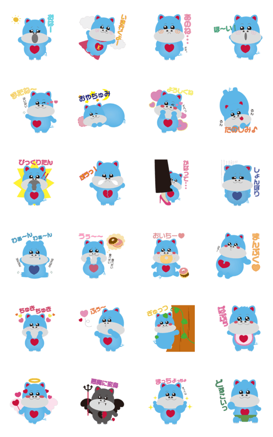 僕かばたん。3歳の男の子です。ドーナツが大好き。 かばたんらしいかわいい表現がいっぱいのスタンプです。
