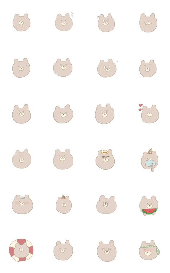 | スタンプ説明 | ミルクティーを飲みすぎてベージュになったべあもん。浮き輪にはまったりスイカを食べたり時には酔っ払ってみたり。のんびりと過ごしています。 |