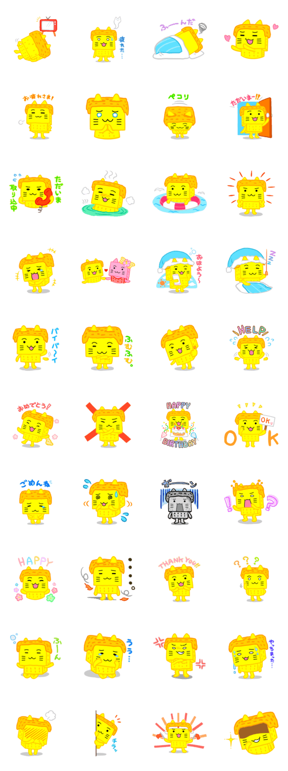 | スタンプ説明 | Living at forest in Hakone region.He likes onsen very much.It looks like BOX and he named Hakoneko Box-happy.He is friendly,affectionately and cheerful. |