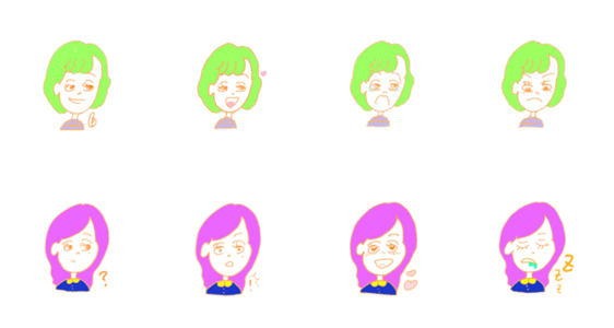 オレンジいろのペンで書いたいろんな表情のおんなのこのスタンプです。