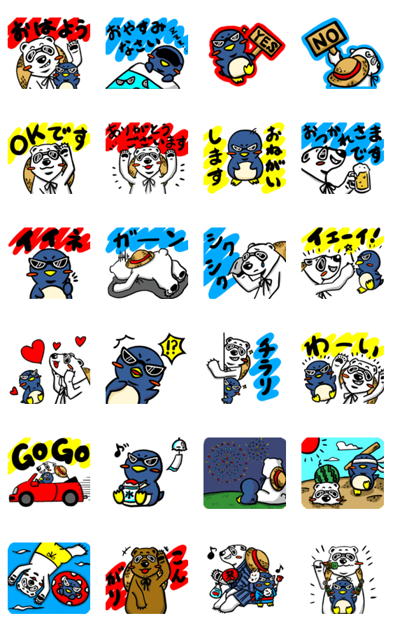 夏が大好きなシロクマのロックとペンギンのペーギのスタンプ