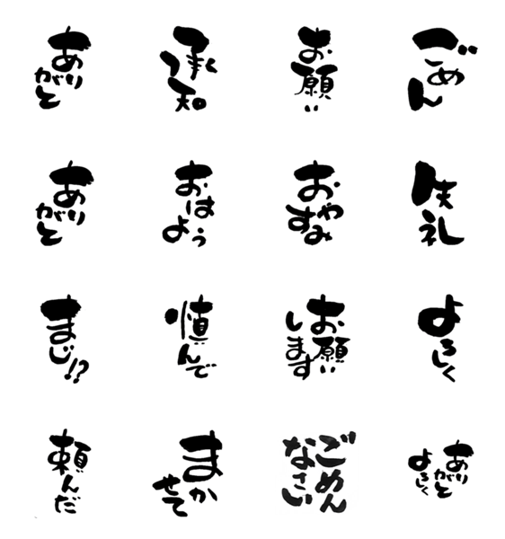 シンプルに筆で書いた文字です。 一画目を太く書いた文字です。