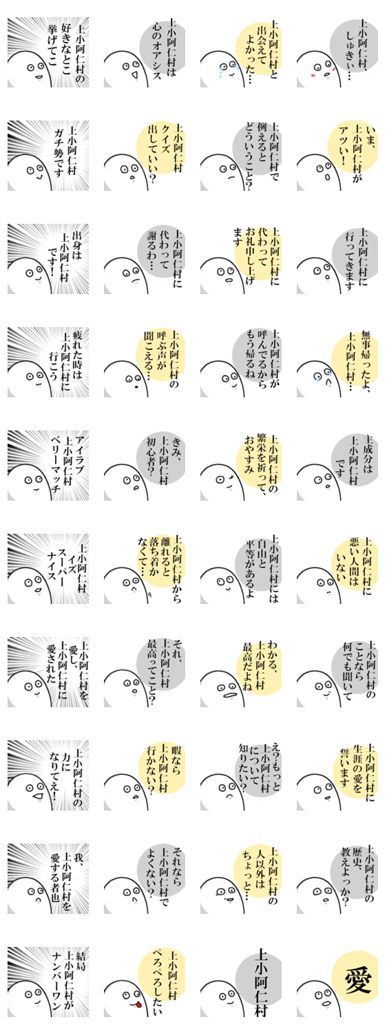 秋田県上小阿仁村が大好きな人のためのスタンプです。住民の方も、そうでない方もどうぞ。