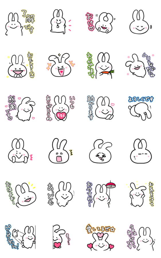 もらってうれしい、いやし系ほんわかうさぎのスタンプです。 彼氏彼女、友達、家族など、大事なひとにあふれる愛を配ります。