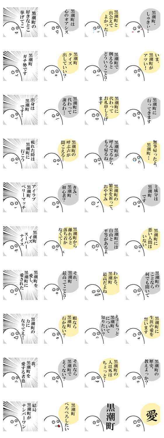高知県黒潮町が大好きな人のためのスタンプです。住民の方も、そうでない方もどうぞ。