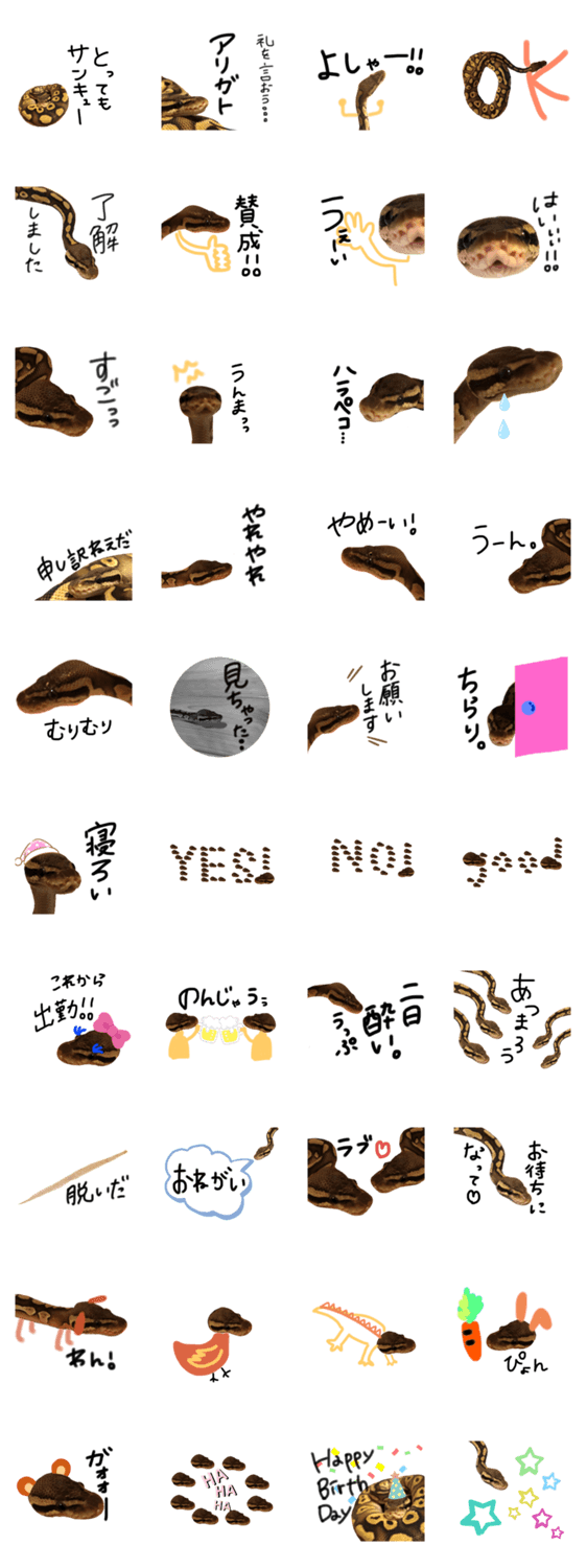 ボールパイソンのらくがきスタンプです(第2弾)!!攻めて使える爬虫類スタンプです♡