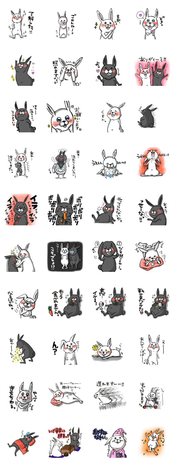 見てて若干腹立つ白いのと、どこか憎めない黒いのと。どちらがお好み?うさだけど、うさじゃないかも。