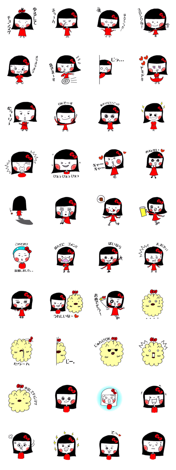 大きなリボンがチャームポイントのもるチャンスタンプ元気でかわいい女の子と天ぷらオバケのスタンプです。