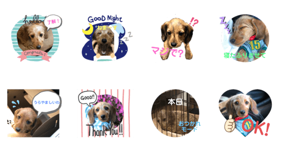 ワイヤーダックスの愛犬RINの日常のおかしな表情を挨拶スタンプにしたよ。LINE Creators Studioで作りました