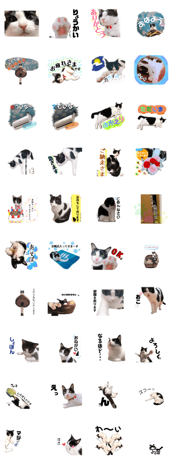 野良猫から家猫になった幸せを運ぶハチワレ猫のスタンプ