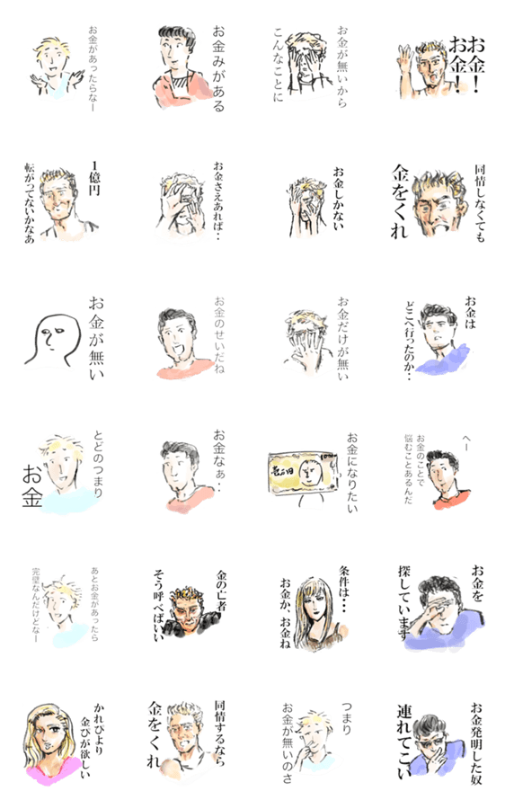 とにかくお金がないことを伝えたいときにどうぞ。素敵な仲間たちがあなたの金欠ぶりを代弁します。私もお金がありません。同情するなら金をくれ。