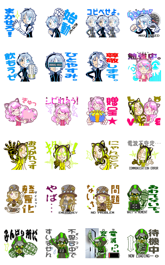 東京で実際に活動している、「サイボーグYuki」率いるサイボーグ5人組の公式LINEスタンプ。半人半機の5人の暮らしは人間よりもちょっぴり愉快★ 様々な表情をするよ!