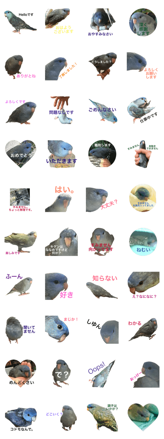 | スタンプ説明 | 自分は人間だと思ってるサザナミインコ のつぶやきスタンプ |