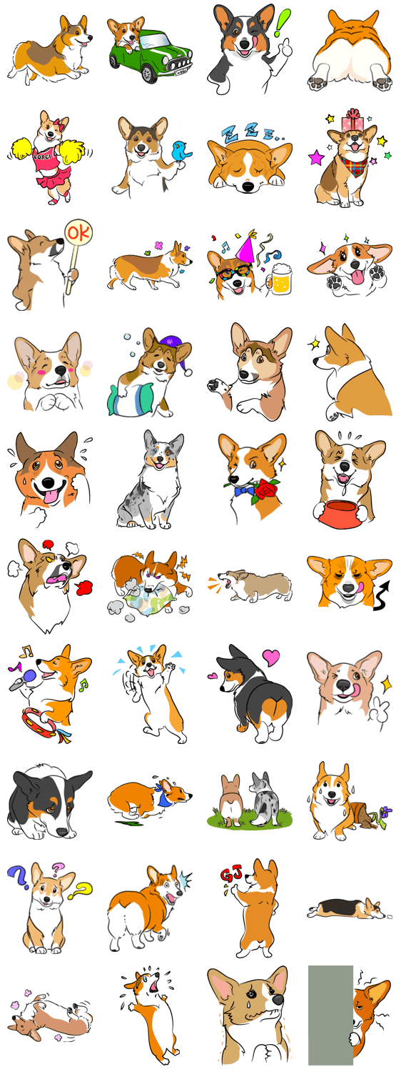 コーギーは、人間大好き、判断能力抜群のおりこう犬。実は寂しがりやで時には反抗的なところもあるけど、やっぱり家庭を守るしっかり者!表情豊かでスタンプにぴったり!!
