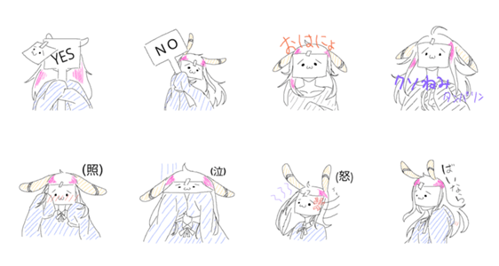 LINE Creators Studioでつくったスタンプです。ちな、私の立ち絵です〜。クソ絵で雑いし、レパもすくないのですが、使っていただけると嬉しいです。初投稿なんでヨロですぅ