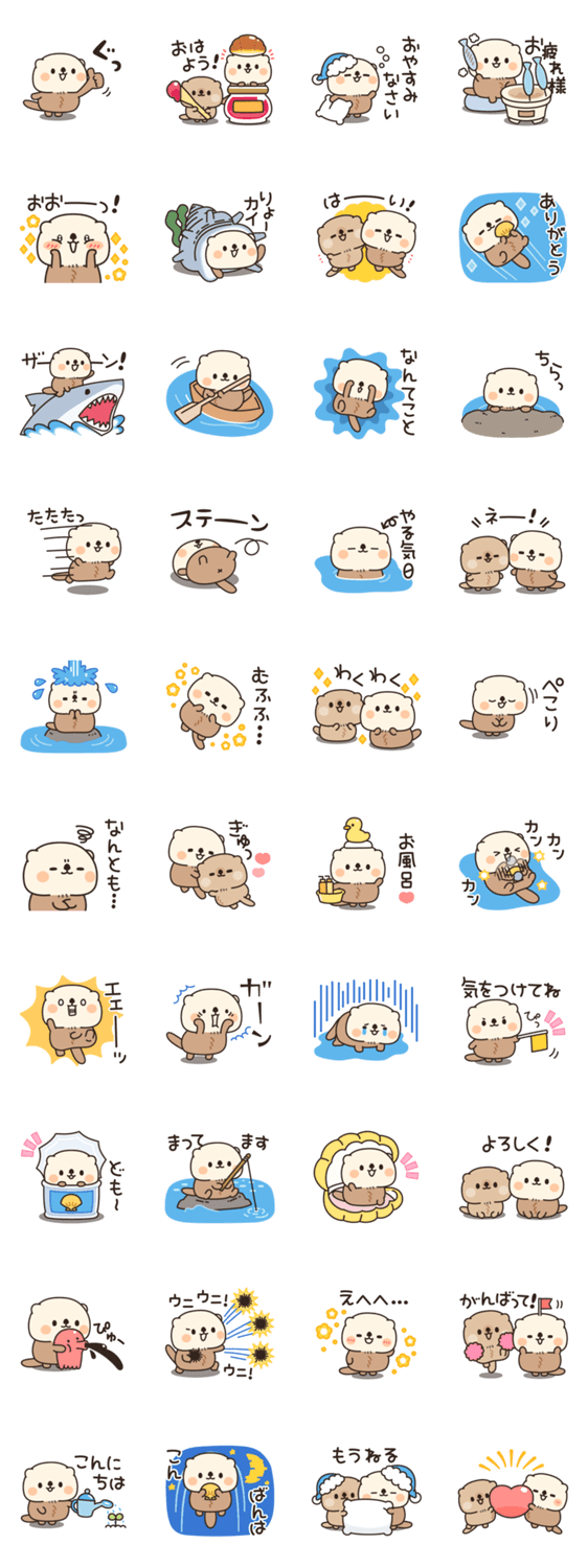挨拶やお返事、リアクションに、日常会話で使いやすいラッコさんの動かないスタンプが出ました!色んな言葉が入っているのでたっぷり使えます♪
