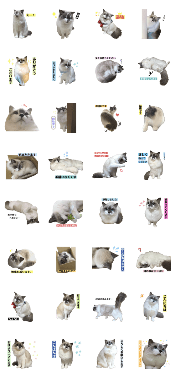 | スタンプ説明 | 表情豊かなもふもふラグドール"まりー"のスタンプです。 |