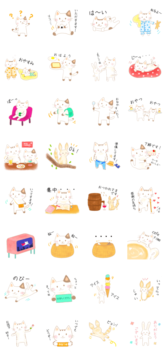 白ネコのあいうえお・・・ってるスタンプ