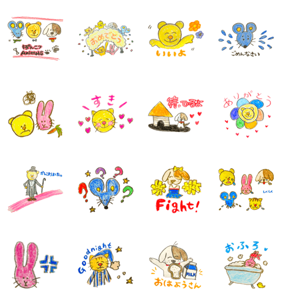 見るからにぽんこつそうな動物たち。でも、みんな愛くるしい優しい子たちです。【使える!基本のスタンプ】