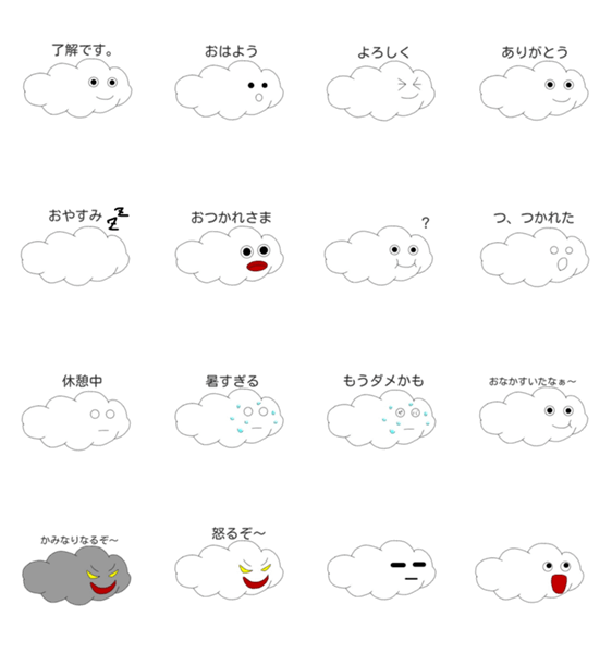 毎日の生活で使えるスタンプをもふもふのくもで作りました。