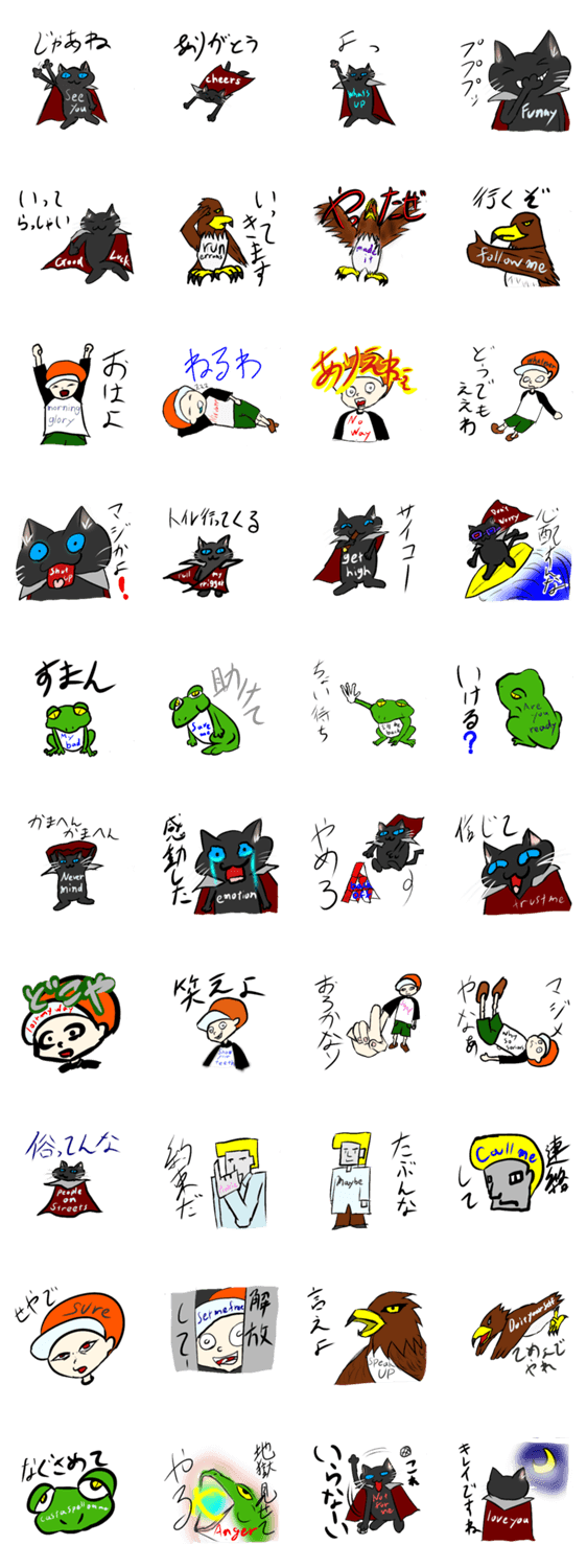 | スタンプ説明 | シュールなキャラの使いやすいスタンプ。 ネコのブラック総帥とその仲間たちが面白く気持ちを伝えるよ。 |