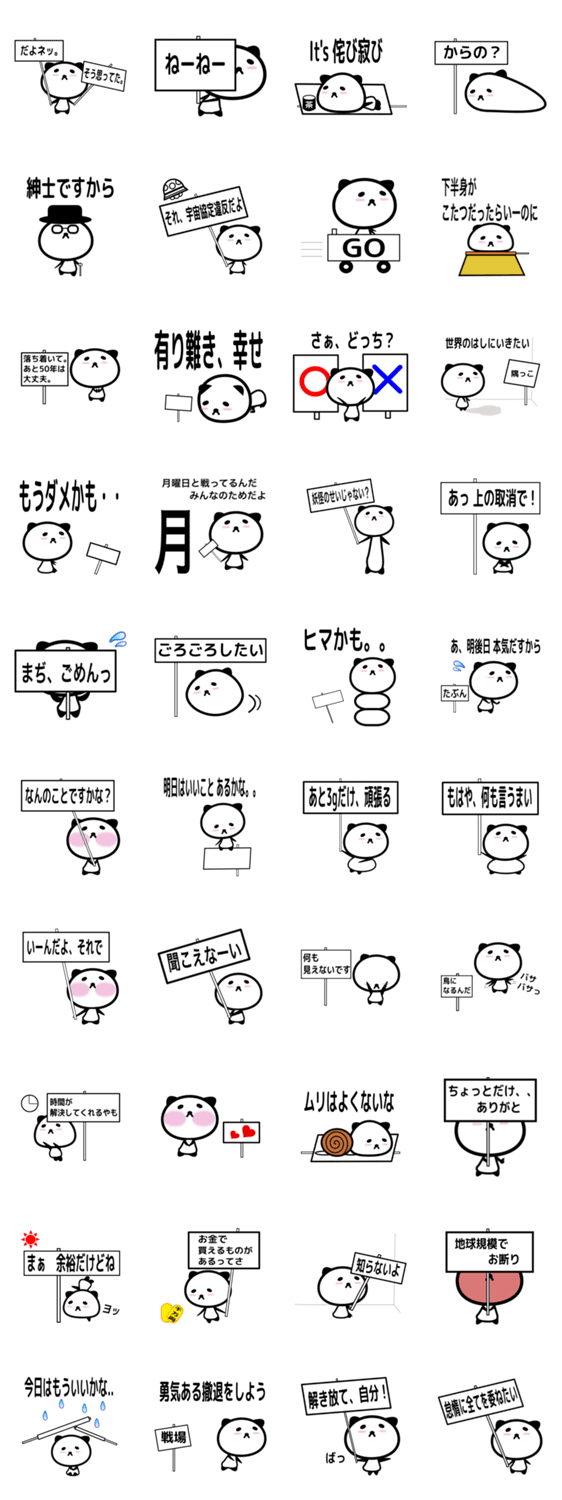 いつもプラカードと一緒に、いろんな感情を伝えるちょっと怠け者のぱんだです。