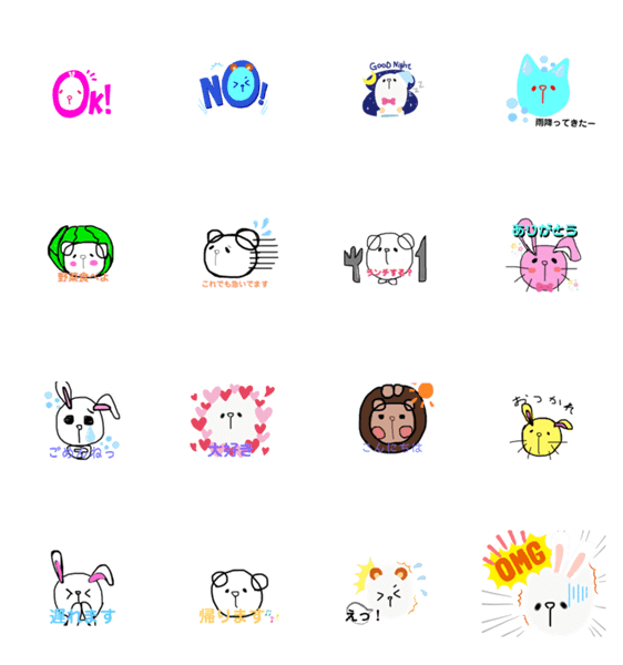 うさぎとクマのキャラクタースタンプです。日常の会話で使えます。