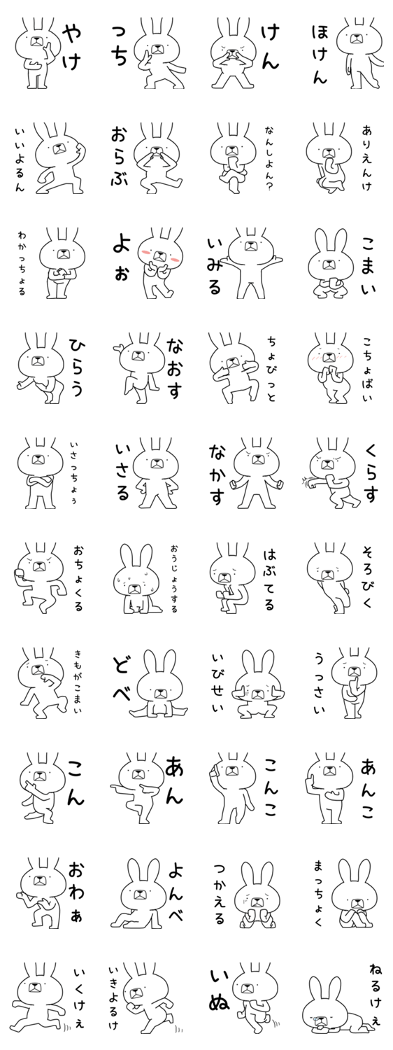 いろんな方言をつかううさぎのスタンプ行橋弁編2(福岡・博多・筑豊、そうでない方も使えるかも。また違う県verに似た方言が見つかるかも)