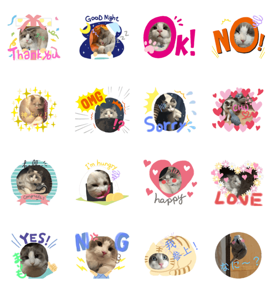 スタンプ説明 愛猫まりも様とオマケにヨウムのポンタくんです♪