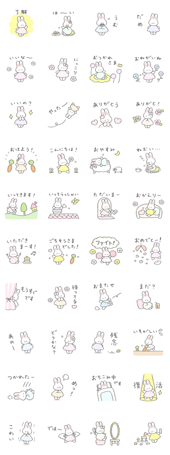 若干ファンシーなうさぎスタンプです。よく使う言葉やあいさつなど。