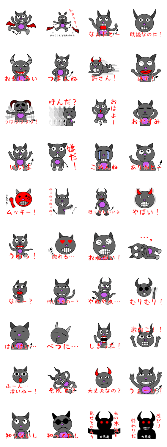 とにかくムカつく小悪魔です。うざいけどちょっと可愛いところもあるんで使ってやってください♪ 冗談が通じる友達に使うのに向いてる…かも? 大悪魔はお兄ちゃんです!