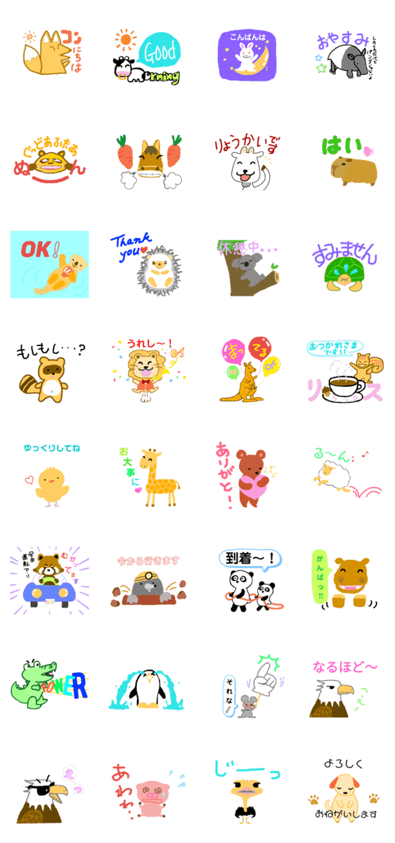 毎日使えるどうぶつスタンプです。ゆかいな動物達と楽しい毎日を♪