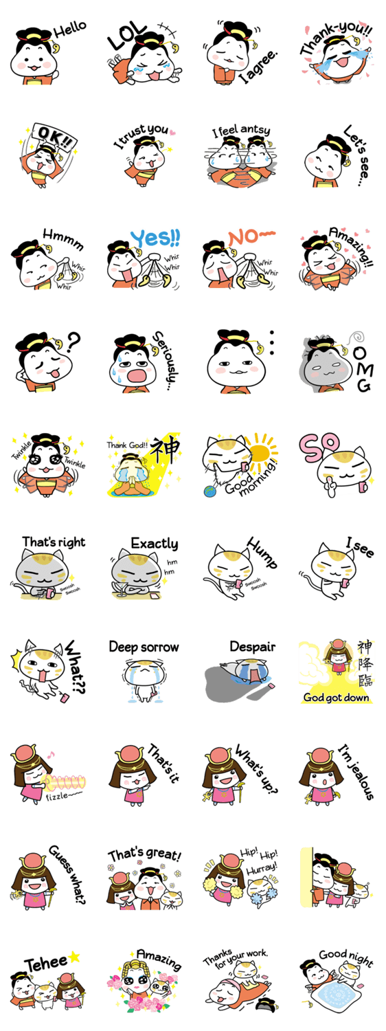 スタンプ説明 ひめと仲間たちの英語バージョンです☆