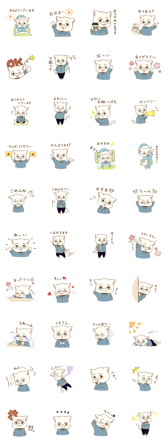かわいい表情豊かな働きねこ、やまねこさん。 友達、先輩や上司の人へも毎日使える日常系スタンプ!