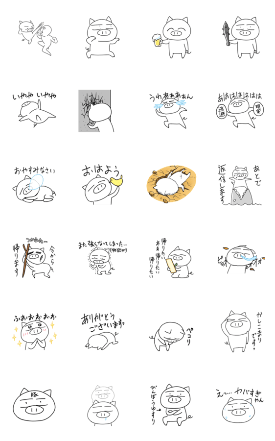 会社に行く前から帰りたい。そんなブタさんが、働きたくないと思いながらもちょっと働いてるスタンプです。