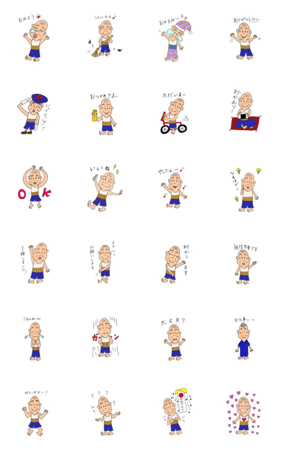 お爺ちゃんの名前は千蔵(せんぞう)。彼の日常をシンプルなスタンプにしました。